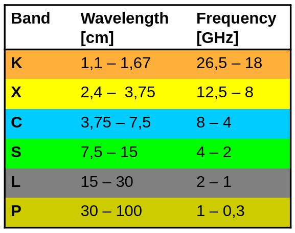 The microwave range is divided into a number of so-called radar bands, designated with a capital Latin letter.